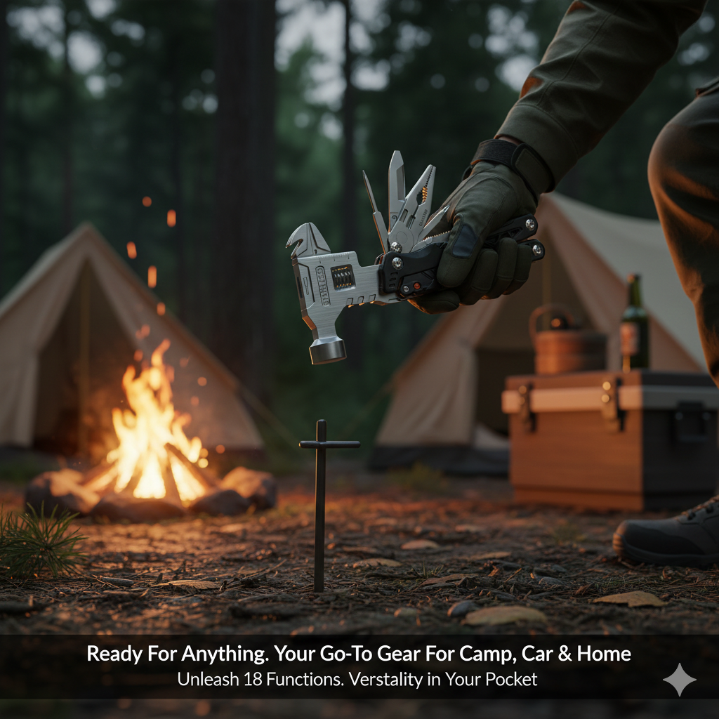 18 tools in one β perfect for camping, repairs, and emergencies.